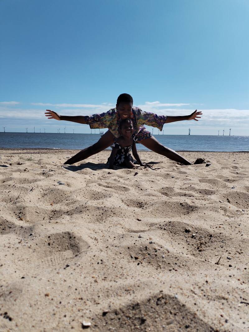 This picture beautifully captures the joy and energy of dancing with my daughter on the beach. A lovely mother on the beach captured this moment, showcasing the undeniable light radiating from my 5 year old. This light is at the heART of Fun๐DANCE with Celestina & INDIA.
